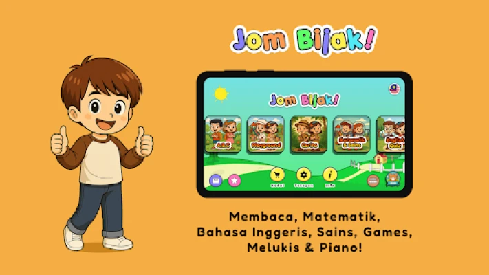 "Jom Bijak!" mengubah pengalaman pembelajaran anak-anak menjadi sebuah pengembaraan yang penuh ceria dan bermakna. Direka khas untuk minda muda, aplikasi ini menyatukan pelajaran penting, permainan interaktif, cerita-cerita menarik, dan penerokaan sains matematik dalam satu platform yang komprehensif. Matlamat utama adalah untuk menyemarakkan minat belajar secara semula jadi, menjadikan setiap sesi tidak terasa seperti tugasan, tetapi sebaliknya sebuah sesi penemuan yang menyeronokkan, membangunkan kemahiran akademik dan nilai murni secara serentak.