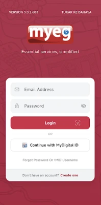 Mulakan pengalaman perkhidmatan e-kerajaan yang lancar dan cekap di hujung jari anda. Dengan platform mudah alih MyEG yang diperbaharui, pengurusan urusan rasmi kini lebih mudah diakses berbanding sebelum ini. Sesiapa sahaja yang mempunyai akaun MyEG sedia ada boleh memanfaatkan kemudahan ini dengan hanya menggunakan nama pengguna dan kata laluan mereka untuk log masuk.