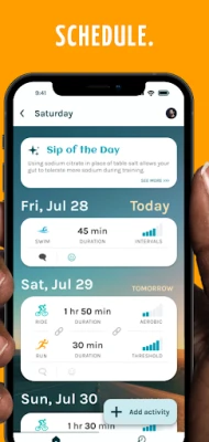 Adakah anda seorang atlet ketahanan yang sering bergelut dengan misteri pemakanan, buntu dalam membuat tekaan liar atau dibebani oleh standard industri yang mahal? Aplikasi Saturday hadir untuk merevolusikan pengalaman sukan anda, menjadikan nutrisi ketahanan elit mudah diakses dan disesuaikan secara peribadi. Lupakan tekanan merancang pemakanan untuk perlumbaan, tumpukan tenaga anda pada prestasi. Saturday direka untuk memastikan anda menjalani sesi latihan terbaik dalam hidup anda, atau pada hari perlumbaan, beraksi dengan penuh keyakinan dan tenang, seperti yang dialami oleh ramai atlet yang telah mencapai prestasi peribadi terbaik mereka. Ini adalah sains pemakanan individu yang dioptimumkan khas untuk anda, latihan anda, dan persekitaran anda.