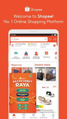 Shopee memudahkan pembelian keperluan Ramadan anda. Nikmati penghantaran percuma tanpa perbelanjaan minimum, diskaun ShopeeFood 50%, dan fesyen terkini melalui Shopee Live. Dapatkan semua tawaran menarik di Bazar Hebat Ramadan Shopee.